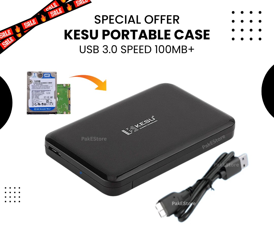 The KESU USB 3.0 Portable Enclosure supports 2.5” SATA Hard Drives and SSDs, delivering speeds up to 100MB/s with USB 3.0. Whether you’re storing massive games, project files, or backups — this plug-and-play case keeps your data fast, safe, and mobile.