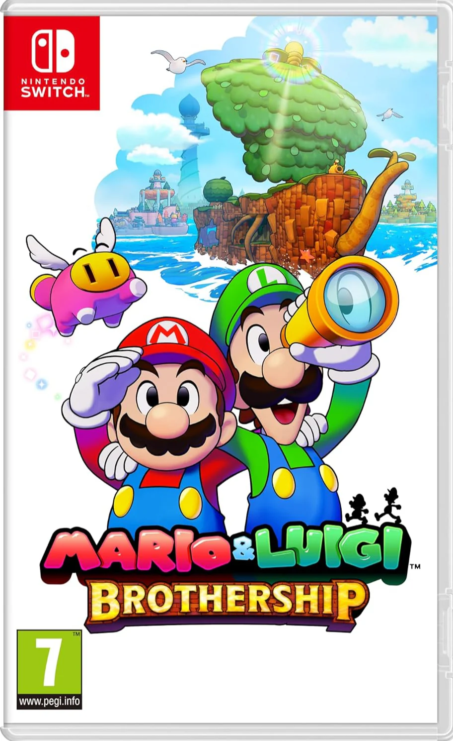 The brothers return for a brand-new adventure on the high seas! Set sail with Mario and Luigi on Shipshape Island (part ship, part island) and journey through the vast world of Concordia. Launch out of Shipshape’s cannon to visit, explore, and quest your way through islands that range from tropical rainforests to bustling cities. Meet new friends along the way, like Connie and Snoutlet (definitely not a pig), and encounter familiar faces from the Mushroom Kingdom like Peach and Bowser, who may help—or hinder—you on your journey!